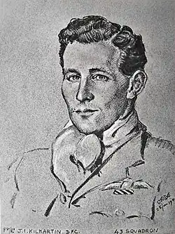 John Ignatius Kilmartin was born on 8 July 1913 at Dundalk, in Ireland. His father, a civil servant for the deputy commissioner for forestry, died when Kilmartin was nine years old. The family was impoverished as a result and Kilmartin was sent to Australia to be educated under a re-homing scheme. Once he completed his schooling he worked on cattle stations in New South Wales. In the early 1930s, he went to Shanghai in China, where he found employment as a clerk in a utilities company. In 1936 he applied for a short service commission in the Royal Air Force, was provisionally accepted and proceeded to the United Kingdom, via the Trans-Siberian railway.[1][2]