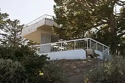 La Grande Tank is a prominent blue 350,000-US-gallon (1,300,000 L; 290,000 imp gal) water tank on the western edge of the park, visible from Interstate 280 and the Excelsior neighborhood.[24] It was built in 1956[25] and stands 80 feet (24 m) tall.[24] During the seismic upgrades performed in 2006, money was set aside to improve what became the Philosopher's Way trail.[25]