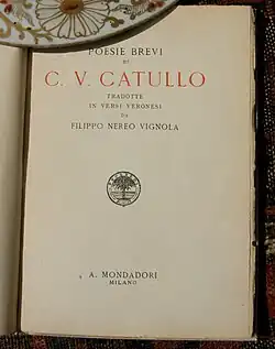 Poesie Brevi di C.V.Catullo, a book of translations of Catullus by John de Salis' great-grandfather, Filippo Nereo Vignola, done at Cà da Buri, Mezzane.