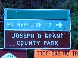1. ^ "Joseph D. Grant County Park. Parks and Recreation". County of Santa Clara. June 12, 2014. Retrieved 2014-09-06.