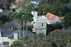 In 1871 Firth purchased his Auckland residence—Clifton—that he had previously leased, and extended the building. To the rear of the wooden Gothic house he erected a large wing in the castellated style which included a 15-metre (49 ft) tall tower, completed in 1873. This structure was built in unreinforced concrete, an experimental material for the period. As well as providing a vantage point with splendid views of the Waitematā Harbour, the tower contained a water tank so the up-to-date indoor plumbing had good water pressure. The tower also contained a study for Firth in which he arranged a small museum of geological items and other curiosities. The house is a Category 1 Heritage New Zealand listed building.[9] In 1882 at Matamata he constructed a second castellated tower, a slightly smaller version of the Mount Eden tower and likewise an extension to an earlier wooden residence. Known as Firth Tower, it is part of the Matamata museum.[10]
