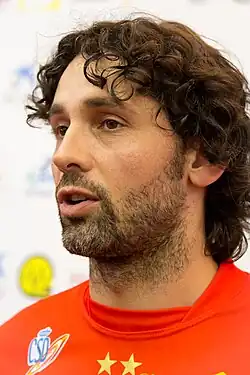 Juan Antonio "Juanín" García Lorenzana better known as Juanín García (born 28 August 1977) is a Spanish former handball player. He retired in 2019 after playing for CB Ademar León. He is the all time top scorer in the Spanish Liga ASOBAL with 2684 goals.[1] He also has the second most matches in the league (628) behind José Javier Hombrados, and the most for any outfield player.[2] With 822 goals he is also the all time top scorer on the Spanish national team.[3]