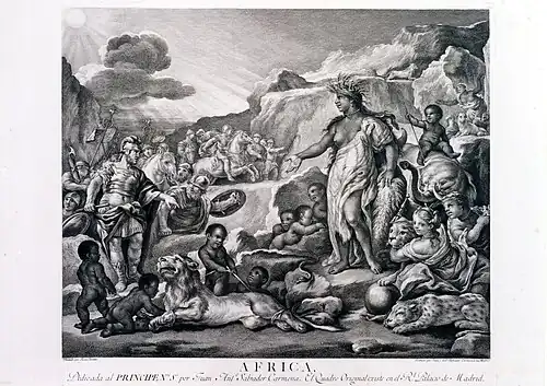 He produced many illustrations for printers. In 1772, he created some for a popular edition of The Conspiracy of Catiline, translated by the Infante, Sebastián Gabriel de Borbón, and published by Joaquín Ibarra. Among his later engravings were portraits of King Charles IV, when he was still a prince, and his consort, Maria Luisa of Parma. He also executed an engraving of Charles, that was based on an equestrian carving made of ivory, and an "Allegory on Spain", based on a design by Luis Paret. This was followed by a series of 41 plates depicting Apostles and Fathers of the Church. An allegorical set of the Four Continents, after Luca Giordano, was dedicated to Prince Charles. As a result, when Charles ascended to the throne in 1788, Juan Antonio was named "Court Engraver".