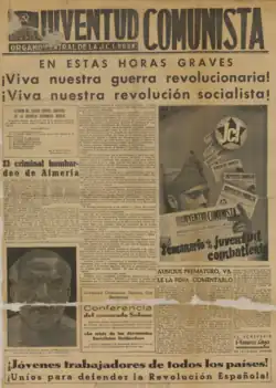 Juventud Comunista ('Communist Youth') was a weekly newspaper published from Barcelona, Spain 1936–1937.[1][2][3] It was the central organ of the Iberian Communist Youth (JCI), the youth wing of POUM.[1][3] The first issue was published on 17 September 1936.[3] It was printed in large format, with four pages. The newspaper carried photos and caricatures.[3] Juventud Comunista had a circulation of 15,000.[3]