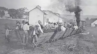 The sugar cane transport was carried out with five steam locomotives.[5] Each of the locomotives could haul up to ten cars loaded with sugar cane.[3] The railway operation was ramped-down in late 1939, because truck transport proved to be more advantageous.[3] By the spring of 1942, road transport had replaced railway locomotives and trucks were used to transport sugar cane to the Kilauea mill.[1]
