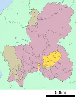 1. ^ 岐阜県の人口・世帯数人口動態統計調査結果. Gifu prefectural website (in Japanese). Gifu Prefecture. Archived from the original on October 10, 2015. Retrieved September 11, 2011.