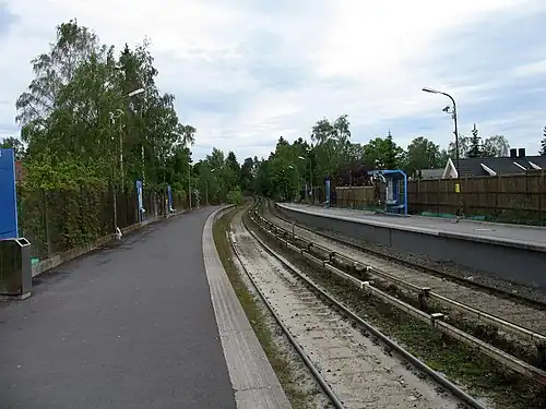 Karlsrud is a station on Lambertseter Line (line 4) of the Oslo Metro, on the north side of Lambertseter. The station is between Brattlikollen and Lambertseter, 8.6 kilometers (5.3 mi) from Stortinget. The station was opened on 28 April 1957 as a tramway and 22 May 1966 as a metro. The station's architect was Guttorm Bruskeland.[1]