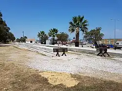 Katakolo railway station (Greek: Σιδηροδρομικός Σταθμός Κατακόλου, romanized: Sidirodromikós stathmós Katakolo) is a railway station that serves the town of Katakolo, Elis in Western Greece, Greece. Located in the centre of Katakolo, close to the harbour and ferry port, the station was opened in 1882 by the Pyrgos-Katakolo Railway Company (SPK), (now part of OSE). Today TrainOSE operates 3 scheduled daily Regional trains[3] to Olympia, via Pyrgos.[4][5] The station is unstaffed[6] however there are waiting rooms available. It was the most western active station on the OSE network.
