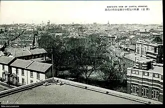 In May 1938, Kenkoku University was founded by an edict of General Kanji Ishiwara in capital Hsinking as the Supreme School of Manchuria (大滿洲帝國最高學府),[13][14] and was run by Professor Sakata Shoichi from Kyoto University.[15] Its purpose was to promote "ethnic harmony" in the region, legitimising and promoting the Japanese occupation.[16] To this end, students were recruited from Japan, China proper, Mongolia, Taiwan, Manchuria, Korea and Soviet Union.[17] As well as offering free tuition, the University also provided its students with board and lodgings, and a stipend.[18] They were gathered at Kenkoku University under the idea of "Five Races Under One Union" to nurture future leaders in Manchuria. Emphasis was placed on "five races equality" (Japanese: 五族平等) and "academic freedom" (Japanese: 学問の自由), and the students slept and ate together in the dormitory, creating bonds that transcend ethnic groups.[19] However, contrary to the original intention of the Japanese authorities, it turned out that Kenkoku was the incubator for a generation of capable Asian leaders who contributed significantly to shaping East Asian identity after World War II. Multiple students of Kenkoku University later became prominent political figures in South Korea—including later South Korean prime minister Kang Young-hoon—, North Korea and China.[20] A number of influential aikido practitioners trained and taught at the University, including aikido's founder Morihei Ueshiba,[21] Kenji Tomiki, Shigenobu Okumura and Noriaki Inoue.[22] In general, students from Japan, China, Korea, the Soviet Union and Mongolia learned at Kenkoku University under the banner of "the harmony of five ethnicities", and sometimes-surprising friendships were forged at the Japan-run institution, even as imperial Japanese troops brutalised much of the region.
