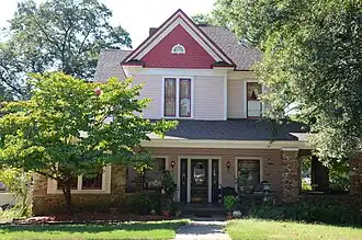 The Kerr-Booth House is a historic house at 611 West Center Avenue in Searcy, Arkansas. It is a two-story wood-frame structure, finished in wooden clapboards and decorative cut shingles. Its roof line is asymmetrical, with projecting gables and a recessed front porch supported by rusticated stone posts. The house was built in 1890 as a Queen Anne Victorian, and was later altered to add Craftsman elements; it is an locally distinctive blend of these styles.[2]