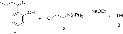 Williamson ether synthesis between 2'-hydroxybutyrophenone (1) and diisopropylaminoethyl chloride (2) gives ketocaine (3).[4][5][6]