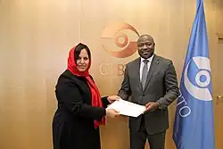Khojesta Fana Ebrahimkhel (born 1964, Kabul, Afghanistan)[1] is the Ambassador Extraordinary and Plenipotentiary of Afghanistan to the Republic of Austria (and non-resident to Croatia, Hungary, Liechtenstein, and Slovenia) and as Permanent/Resident Representative to the United Nations Vienna-based organizations including CTBTO, IACA, IAEA, ICMPD, INCB, OSCE, UNIDO, UNOV/UNODC, effective 2017.[2]