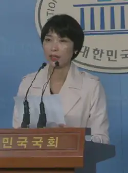 - ^ a b c d [단독] 김정화 대변인, 바른미래당 대표 내정. 24 February 2020. Retrieved 2 April 2020.