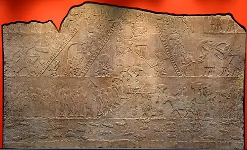 Piye's successor, Shabataka, defeated the Saite kings of northern Egypt between 711 and 710 BC and installed himself as king in Memphis. He then established ties with Sargon II of the Neo-Assyrian Empire.[37]: 120 After the reign of Shabaka, Pharaoh Taharqa's army undertook successful military campaigns, as attested by the "list of conquered Asiatic principalities" from the Mut temple at Karnak and "conquered peoples and countries (Libyans, Shasu nomads, Phoenicians?, Khor in Palestine)" from Sanam temple inscriptions.[40] However the regions in the southern Levant claimed by Shabataka were seen by Assyria as under their dominion, and imperial ambitions of both the Mesopotamian based Assyrian Empire and Kushite Empire made war with the 25th dynasty inevitable. In 701 BC, Taharqa and his army aided Judah and King Hezekiah in withstanding a siege by King Sennacherib of the Assyrians (2 Kings 19:9; Isaiah 37:9).[41] There are various theories (Taharqa's army,[42] disease, divine intervention, Hezekiah's surrender or agreeing to pay tribute) as to why the Assyrians failed to take the city.[43] Historian László Török mentions that Egypt's army "was beaten at Eltekeh" under Taharqa's command, but "the battle could be interpreted as a victory for the double kingdom", since Assyria did not take Jerusalem, however the Egyptian and Kushite forces withdrew to Egypt and the Assyrian king Sennacherib appears to have occupied part of the Sinai.[44]