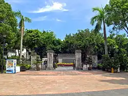The Yamen (衙府) is located in the centre of the Park and is the only remaining old Qing building. It was built in 1847; its interior was dominated by the offices of the Commodore of the Dapeng Brigade (大鵬協府) and the Kowloon Assistant Military Inspectorate (九龍巡檢司衙署). It was designed with three rows and four wings of houses. Its walls and column bases are built from bricks and granite, while the roof is a traditional structure covered with cylindrical and flat tiles. After 1899 the Yamen was used for charitable purposes, like housing elderly. It is now officially classified as a declared monument in Hong Kong. Six exhibition rooms are housed inside.[7]