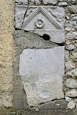 The remains of a prehistoric settlement with embankments stand above the village, testifying to early settlement of the area. The remnants of a Roman building with a decorative mosaic were discovered at the Vodnik farm in 1939 while excavating the late Gothic foundations of the original church. A Roman sarcophagus was also discovered. It had been reused for an early Slavic burial and contained burial goods from the Köttlach culture.[7]