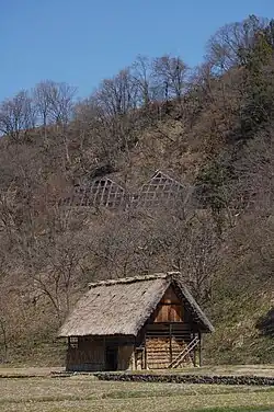 They are constructed from a grid of heavy timbers laid to form a foundation, with posts and braces forming bracing for the walls. The interior walls are lined with heavy boards fixed on the inner side. In the case of the kura in Shirakawa, the roofs are thatched in a similar manner to gasshō-zukuri. Traditionally grain was stored on the ground floor with household items stored on the upper floor.[14]