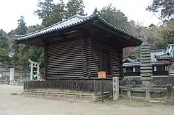 Azekura (校倉, literally intersecting storehouse) have descended in style from the Yayoi period when triangular section logs were used for building.[10] Historic examples have been preserved within the compounds of Buddhist temples and Shintō shrines. The most famous examples are the Shōsōin at Tōdai-ji in Nara, and storehouses at the Tōshōdai-ji in Nara and the Itsukushima Shrine in Hiroshima. These kura have all been dedicated to storing religious and cultural treasures.[11]
