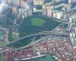 Kwai Chung Park is a public park currently under construction in Hong Kong. It is located in the southern part of Kwai Chung, within the Kwai Tsing District of the New Territories, on the site of the former Gin Drinkers Bay landfill, which was decommissioned in 1979.[1][2] The park is connected to the nearby Kwai Shing Estate by a pedestrian bridge. Plans to transform the landfill into a major town park date back to the 1980s under the British Hong Kong administration. However, just as the project neared completion, the discovery of methane on-site forced authorities to indefinitely postpone its opening. In 2009, a 3.9-hectare section of the site was repurposed as the Hong Kong Jockey Club International BMX Park, which saw only limited public use before being closed in 2010. This area is expected to form the first phase of the park when it reopens. The remainder of the landfill has largely been left abandoned, drawing widespread public concern and criticism. The site was cited twice in reports by the Audit Commission for mismanagement. It wasn’t until 2018 that part of the area was finally developed into a temporary cricket ground. If the entire landfill is eventually incorporated into the park, Kwai Chung Park would span approximately 27 hectares, making it the largest park in Hong Kong—larger than both the completed Tai Po Waterfront Park [3] and the under-construction Metro Park in the Kai Tak Development Area of East Kowloon.[4]