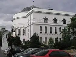 Originally, the building was built in 1912 for the Kyiv Pedagogical Museum that existed since 1901 and was located until 1913 in a building of the Kyiv National Academic Theatre of Operetta. In 1917 the museum was liquidated, and the building quartered the Central Council of Ukraine from March 17, 1917 until April 29, 1918.[2] In August 1917 here took place All Ukrainian teachers Congresses and on 7 November 1917 here was established the Ukrainian Academy of Pedagogical Sciences. In December 1917 the building became a home of the Ukrainian Academy of Arts. In 1918-19 the building was occupied by the Directorate of Ukraine. After elimination of Ukrainian government from Kyiv in 1919, the building was used for various administrative institutions until 1925 when it was turned into the Museum of Revolution. In 1938 the building housed the Kyiv branch of Central Lenin Museum until 1982 (moved to the new Ukrainian House). In 1930s it somewhat changed its appearance and by the design of its original creator Pavlo Alyoshyn it was rebuilt.