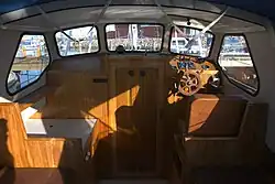The hull is made of white fiberglass and the keel as a long-keel containing 1 ton of iron.