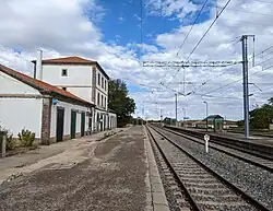 La Fuente de San Esteban-Boadilla is a railway station located in the Spanish municipality of La Fuente de San Esteban, in the province of Salamanca, autonomous community of Castilla y León. It has no passenger services, although it can be used as a switch for crossing trains. Historically, the La Fuente de San Esteban-Boadilla station was a railway junction of some importance, where the Medina del Campo-Vilar Formoso and Barca d'Alva–La Fuente de San Esteban lines converged,[1] both of international character. As a result, it had considerable passenger and freight rail traffic, as well as a number of large-scale facilities. The closure of the line to Barca d'Alva in 1985[2][3] meant that the station lost its importance, the situation got worse when the Barca d'Alva railway station closed in 1988.[4]