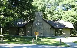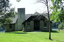 On November 15, 1990 three areas of the park were listed on the National Register of Historic Places. Their historic importance is derived from their association with the CCC. The park was part of a larger study of Iowa's state parks called the "Civilian Conservation Corps Properties in Iowa State Parks: 1933-1942".[5] Area A focuses on a picnic area that includes the park's entrance portals, a picnic shelter, two latrines, three fountains, a footbridge, and the associated landscaping and trails. These facilities were built from December 1934 to April 1935.[3] Area B includes the bathhouse, restroom, and concession. Company 769 began construction of these facilities in May 1935, and the side camp completed them by September 1937.[6] Area C is the lodge or refectory. It was begun in July 1936 and completed in July 1937.[7] The Rustic style was used in the design of the buildings. The significance of this architectural style is that it was designed to blend into its natural surroundings by means of its material, design, and workmanship.[3] Areas A and B are historic districts, while Area C is an individual listing.