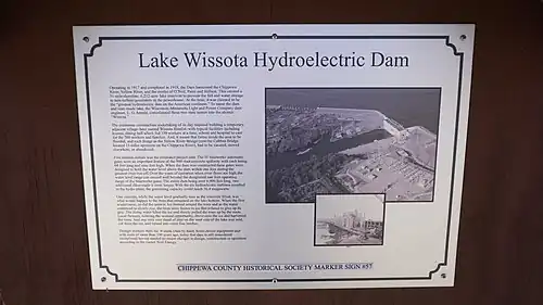 A plaque detailing the history of the Wissota Hydroelectric Dam.