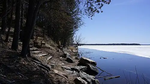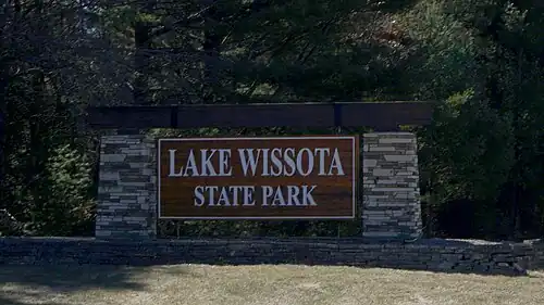 Lake Wissota State Park is a 1,062-acre (430 ha) Wisconsin state park near the town of Chippewa Falls. The park is situated on the northeast shore of Lake Wissota, a reservoir on the Chippewa River. Camping, boating, and fishing are the most popular activities. Park lands are covered in a mix of pine/hardwood forests and prairie. Visitors can access the Old Abe State Trail and bike or hike 17.5 miles (28.2 km) to Brunet Island State Park.