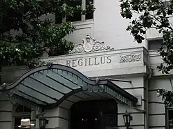 Beaux Arts-style entrance to the Regillus apartment building