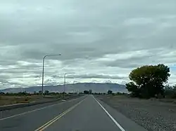 View west along Lakeview Parkway from about 2100 West, with Lake Mountains in the distance, October 2018. Note the graded area on the right (north) for future lanes.