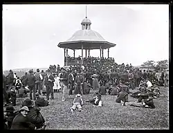 The largest and principal industry was the Scottish-Australian Mining Company's Lambton Colliery, which was formally opened with a celebratory dinner in December 1863.[4] The colliery was initially managed by Thomas Croudace, and then from July 1892[5] by his son Frank Croudace. The mine closed in 1936[6], although the railway line which connected it with Newcastle harbour remained operational until 1963[7], providing coal transport for other nearby mines. Today the area of the main pit entrance of Lambton colliery is occupied by Lewis Oval and surrounding houses.
