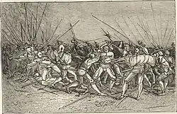 The Swedish surname Lantz is thought to have originated as a military-related name derived from "lance," (modern Swedish, "lans") which is a pole weapon designed to be used by a mounted warrior or cavalry soldier called a Lancer.[7] Military-related names became relatively common in the Swedish military in the 17th and 18th centuries as members were required to adopt unique surnames as a means to distinguish themselves from one another.[8]
