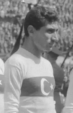 Lefter Küçükandonyadis (Greek: Λευτέρης Αντωνιάδης, Lefteris Antoniadis;[6] 22 December 1924 – 13 January 2012) was a Turkish professional footballer of Greek descent,[6][3] who played as a forward. He is often recognized as one of the greatest strikers to play for Fenerbahçe and Turkey.[7] Having won several regional and national championship titles with Fenerbahçe and becoming Turkish top scorer twice in his career, he left an imprint on the history of the club. Lefter is one of a few players whose names are included in the Fenerbahçe Anthem. He was also known as "Ordinaryüs" (professor of professors) in Turkey.[8]