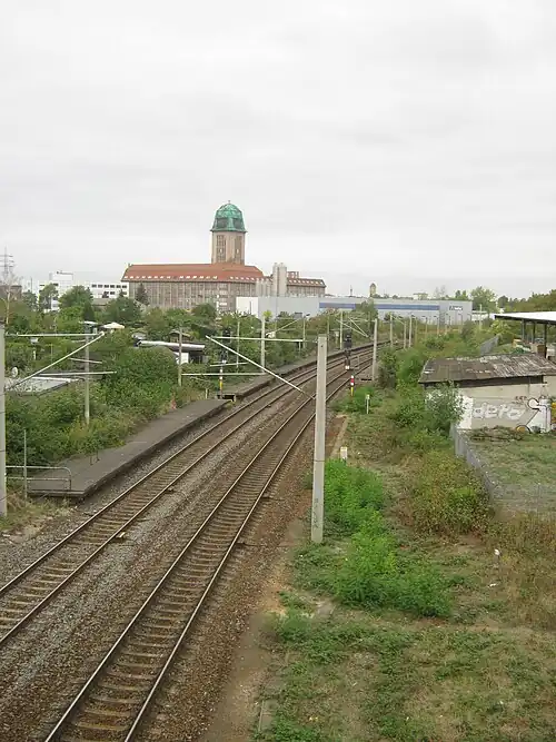 Leipzig Industriegelände West (German: Haltepunkt Leipzig Industriegelände West) was a former railway station located in Leipzig, Germany. The station was located on the Leipzig–Probstzella railway. The station closed in December 2012, as part of the renovation and upgrade of the line for the S-Bahn Mitteldeutschland, which opened in December 2013.