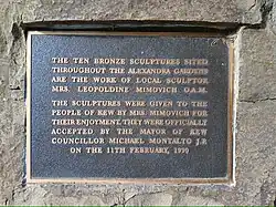 Plaque commemorating the donation of 10 bronze sculptures by Leopoldine Mimovich OAM to the 'people of Kew', at Alexandra Gardens in Kew