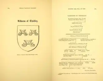- ^ a b c d Foster, J. (1887). "Lilburne of Thickley," in Vis. of Durham, 1615, p. 215. Hathitrust.org. eBook.