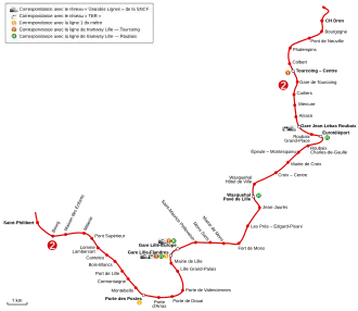 - ^ "Carte détaillée du réseau de métro et tramways de la région lilloise" [Detailed map of the metro and tramway network in the Lille area] (in French). Retrieved July 2, 2025.