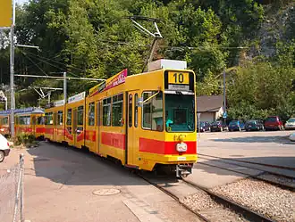BLT's tram line 10 is an international tramway line in Europe which is 25.6 kilometres (15.9 mi) in length. The line in the region of Basel, Switzerland, is operated by Baselland Transport (BLT).
