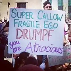 The 2017 Women's March was a network of global political rallies that took place in cities around the world on January 21, 2017. These "sister marches" were both formally and organically related to the popularized 2017 Women's March, all of which happened in concert. The date of this global protest is particularly significant because it was the first day of President Donald J. Trump's term. In addition, the protest was largely in response the positions of the new presidency and the results of the 2016 presidential election. The march was also about promoting women's rights. Other noted causes included, but were not limited to: immigration reform, climate science, and health care reform, countering religious discrimination, violence against women, LGBTQ abuse, addressing racial inequities (e.g. Black Lives Matter), workers' issues, and environmental issues.[1]