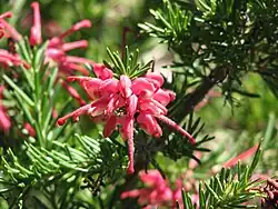 | 'Pretty Pink' | Grevillea arenaria x G. 'Crosbie Morrison'. Introduced in Victoria in 1985. | [2] | ||