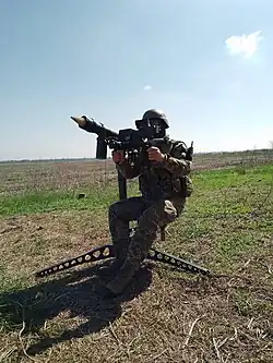 Ukrainian soldier with a DPM machine gun