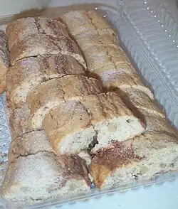 Mandelbrodt bread. The Yiddish word mandelbrodt literally means almond bread, a reference to its common ingredient of almonds.