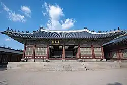 The hall was a new addition during the Gojong-era reconstsruction.[102] After the 1917 Changdeokgung fire, it was disassembled and moved to Changdeokgung.[82][35] It is not known how the building was used.[102] |