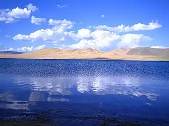 2594 2010 The park encompasses two large freshwater lakes, Bayan Lake to the west, and Ulaagchin Khar Lake 50 km to the east. This is the 'Khar Lake' in Zavkhan Province located in a depression below the Tarvagatai Mountains. Ulaagchin Khar is surrounded by sand dunes and mountains.[43][44]