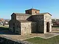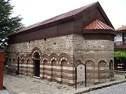 Church of St Demetrius of Thessaloniki, Veliko Tarnovo Veliko Tarnovo Bulgaria 1185 Bulgarian Orthodox Church Medieval Bulgarian Orthodox Church in the city of Veliko Tarnovo in central northern Bulgaria, the former capital of the Second Bulgarian Empire. The church lies at the northeastern foot of the Trapezitsa and Tsarevets hills, on the right bank of the Yantra River, outside the city's medieval fortifications. Architecturally, it has a pentahedral apse and a cross-domed design with a narthex and a fore-apse space. It was once part of a large monastery and belonged in its southeastern part. The church's exterior is decorated with blind arches and colourful ornaments: glazed rosettes, suns, rhombs and other painted figures. The church was built of stone alternated with three rows of bricks. It is 15.75 by 8.40 metres (51.7 ft × 27.6 ft) in size. The church was the place where the anti-Byzantine Uprising of Asen and Peter was proclaimed in 1185; it was this uprising that led to the reestablishment of the Bulgarian Empire and the proclamation of Tarnovo for its capital.[73]