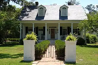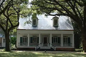 Examples of slave housing can be found on many of the extant plantation complexes. Historically housing for enslaved people on Louisiana plantations (prior to the reconstruction era), featured cabins consisting of two rooms, with one family in each room.[16] After the American Civil War in 1865, the United States of America had abolished slavery, and the architecture changed for laborers on plantations to include more space, one example of this is found at the Allendale Plantation in Port Allen.[16]