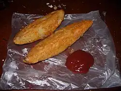 | Chips | For the fried potato sticks, see § French fries. For the crisp, sliced potatoes, see § Potato chip. | ||