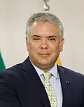 Under the Colombian Constitution of 1991, the president of Colombia is the head of state and head of government of the Republic of Colombia. As chief of the executive branch and head of the national government as a whole, the presidency is the highest political office in Colombia by influence and recognition. The president is also the commander-in-chief of the Military Forces of Colombia. The president is directly elected to a four-year term in a popular election. Since the passing of the Legislative Act 2 of 2004, no person may be elected president more than twice.[1] In 2015, a constitutional amendment repealed the 2004 changes and reverted to the original one-term limit.[2] Upon the death, resignation, or removal from office of an incumbent president, the vice president assumes the office. The president must be at least 30 years of age and a "natural born" citizen of Colombia.