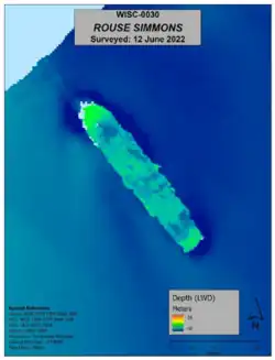 83. ^ Madeline Roth, John Bright, and Russ Green, "Baseline Monitoring Documentation of Maritime Heritage Resources in the Wisconsin Shipwreck Coast National Marine Sanctuary," Report of 2022 Field Operations, Office of National Marine Sanctuaries, National Oceanic and Atmospheric Administration, December 2022, p. 32.